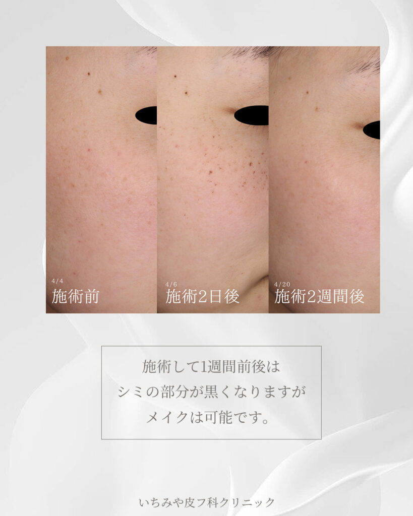 また、施術後は一時的にシミが濃く浮き出るなどの